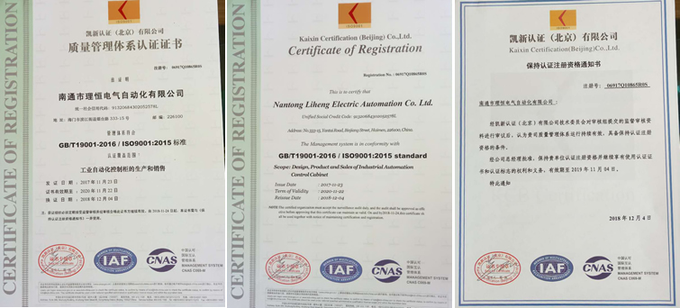 12月4日,我司生產基地南通市理恒電氣自動化有限公司獲得國家有關質量體系認證管理機構頒發的保持認證注冊資格通知書。證書確認我司生產基地符合工業自動化控制柜生產和銷售的管理體系GB/T19001-2016/ISO9001:2015標準。