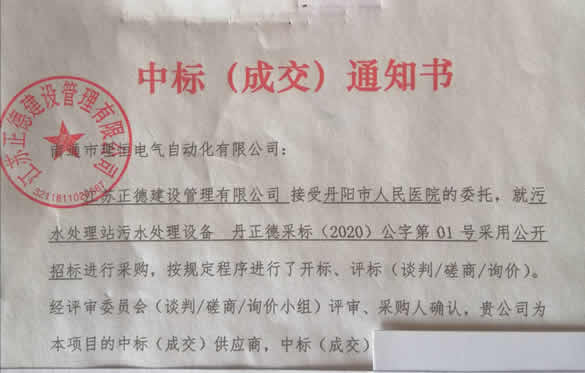 圖為我司獲得該項目的中標通知書