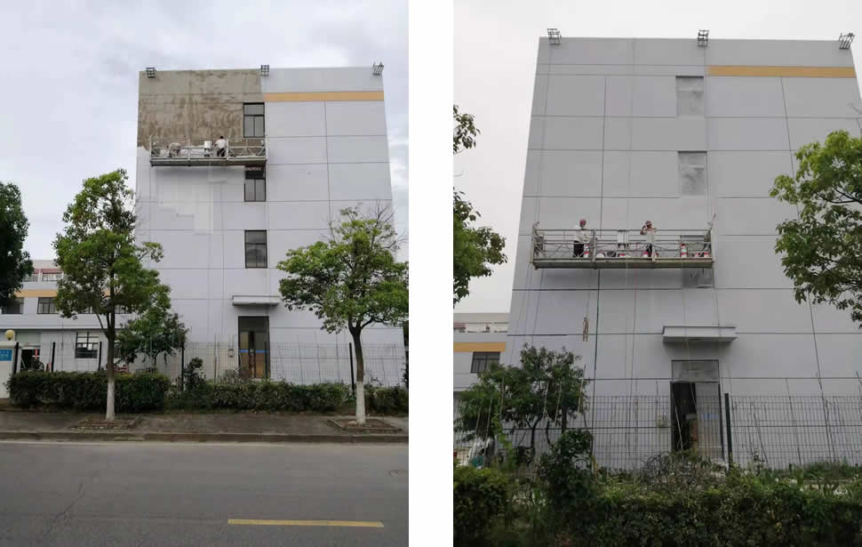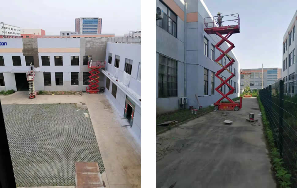 為了進一步提升公司對外形象,優化廠容廠貌,經公司董事會研究,自今年六月上旬起,我司決定將廠區所有外墻面進行整體防水升級改造。鏟除并清理原有外墻基面,重新上網格布上砂漿,批膩子,上涂料,噴真石漆,施工至今已有數周。